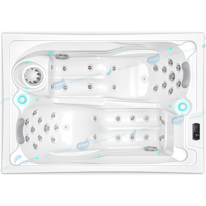 JOYEE 2-person outdoor hot tub measures 2000 × 1400 × 780 mm, offering a compact yet comfortable soaking experience ideal for private relaxation spaces.